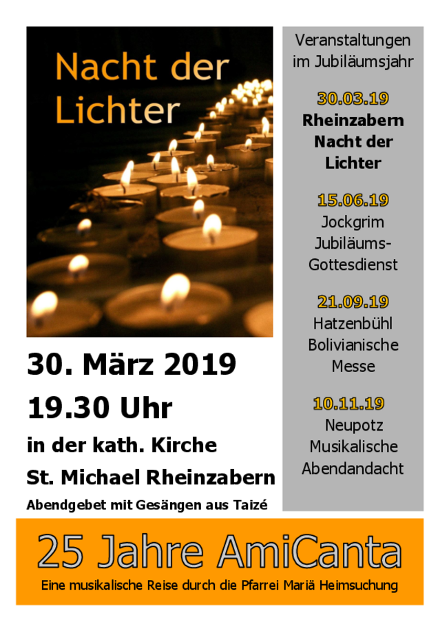 "Nacht der Lichter" am Sa, 30.März 2019 um 19.30 Uhr in St.Michael Rheinzabern