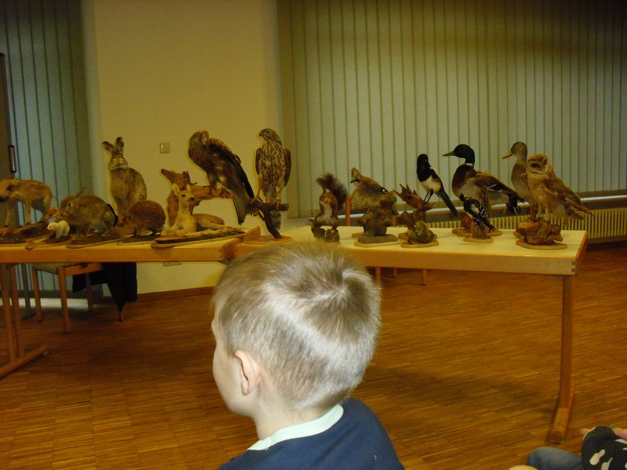 Am Freitag, den 10.02.2017, besuchte ein Mitarbeiter des Forstamts mit seinem Wald- und Wildanhänger vormittags die Kita Arche Noah. Aufgeteilt in 3 Altersgruppen gab es für die Kinder allerlei zu entdecken: Präparierte Tiere, wie z.B. ein Rehkitz, einen Dachs, einen Hase, ein Kaninchen, eine Fledermaus, ein Specht, eine Elster, ein Entenpaar, eine Maus, einen Siebenschläfer und einen Fuchs. Spannendes zu jedem Tier wurde den Kindern, die mit sehr großem Interesse lauschten, vermittelt: Was die Tiere gerne fressen, wie man sie unterscheiden kann (z.B. Hase und Kaninchen), wie man sich verhält, wenn man ein Junges ohne seine Mama findet und noch vieles mehr. Die meisten Tiere kannten die Kinder, aber das ein oder andere Tier war ihnen anfangs noch fremd. Da die Kinder auch einige Tierlieder kennen, sangen sie „Fuchs, du hast die Gans gestohlen“ vor. Toll war auch die Möglichkeit, den Dachs, die Enten oder den Igel zu streicheln, damit man die Unterschiede erfühlen konnte.