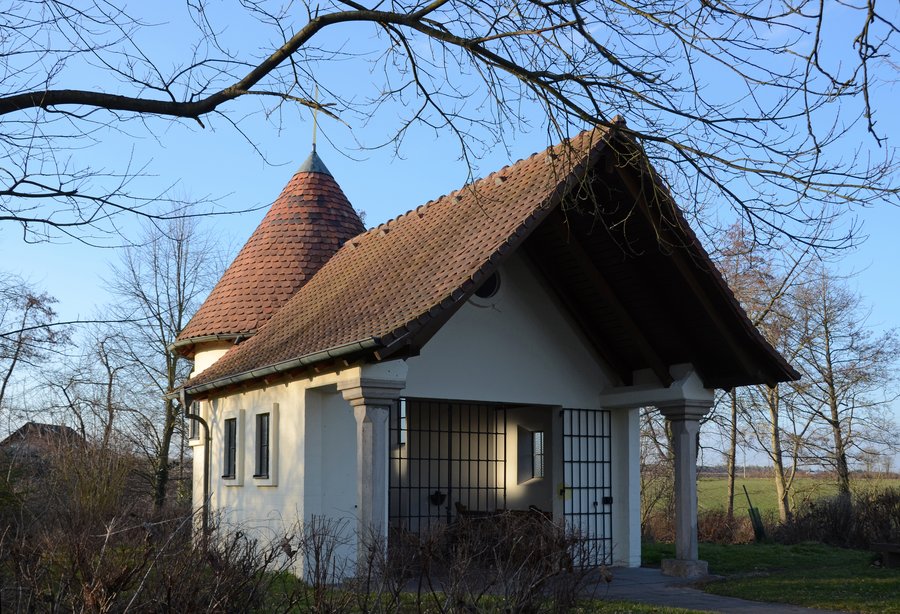 Am 8. September vor 30 Jahren hatte Pfarrer Heribert Vogelgesang die neugebaute Kapelle in der Gemarkung „In den Schleichen“ auf freier Flur ihrer Bestimmung übergeben. Der Neubau von 1985 erinnert an die ehemalige St. Anna Kapelle an der Neupotzer Straße, welche 1967 abgetragen werden musste. Sie ging zurück auf eine Stiftung von Frau Maria Anna Avril. Die Stiftungsurkunde besagt, dass die Kapelle dort stehen solle „zwischen den Lebenden und den Toten“, d. h. zwischen Dorf und Friedhof.