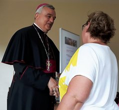 Überreichung der Urkunde des Qualitätsbriefes durch Bischof Wiesemann an Nicole Frei (Leitung der KITA Arche Noah)